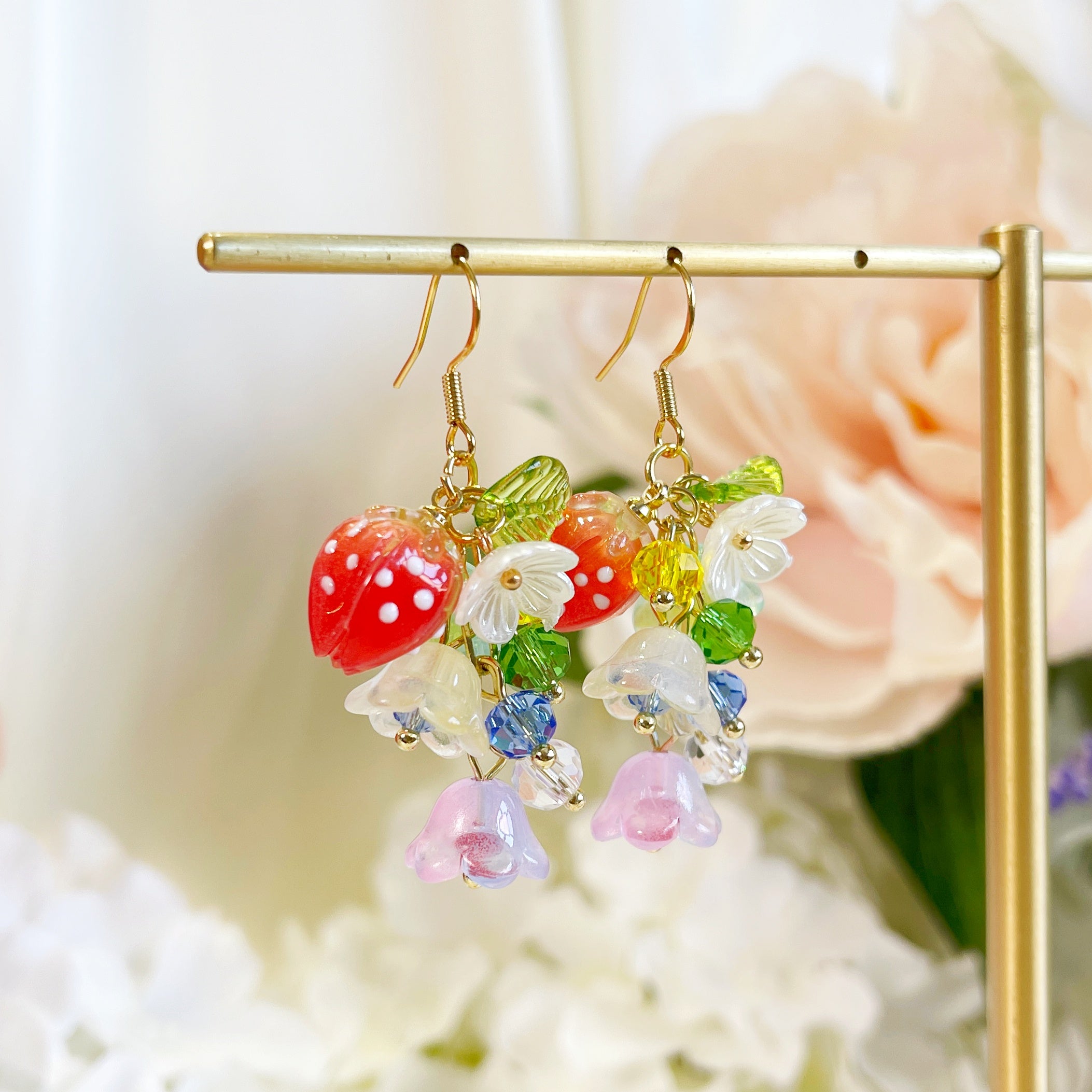E237 pink strawberry earrings, dangle earring fruit earrings