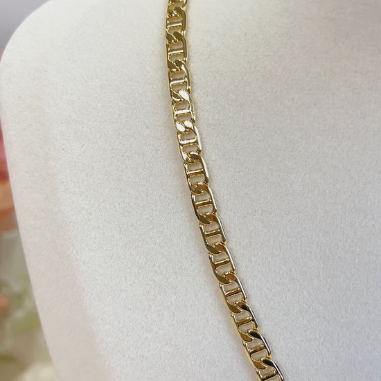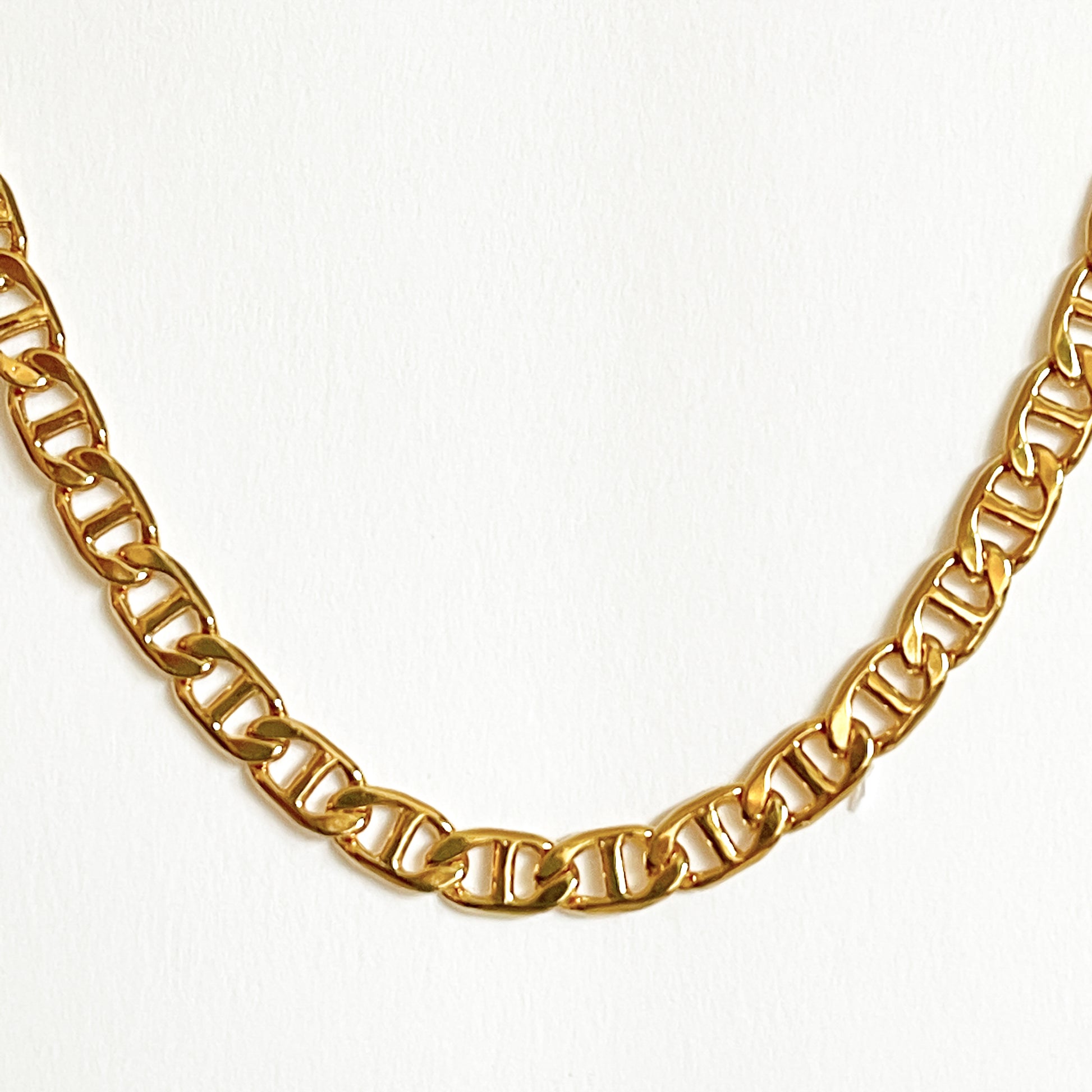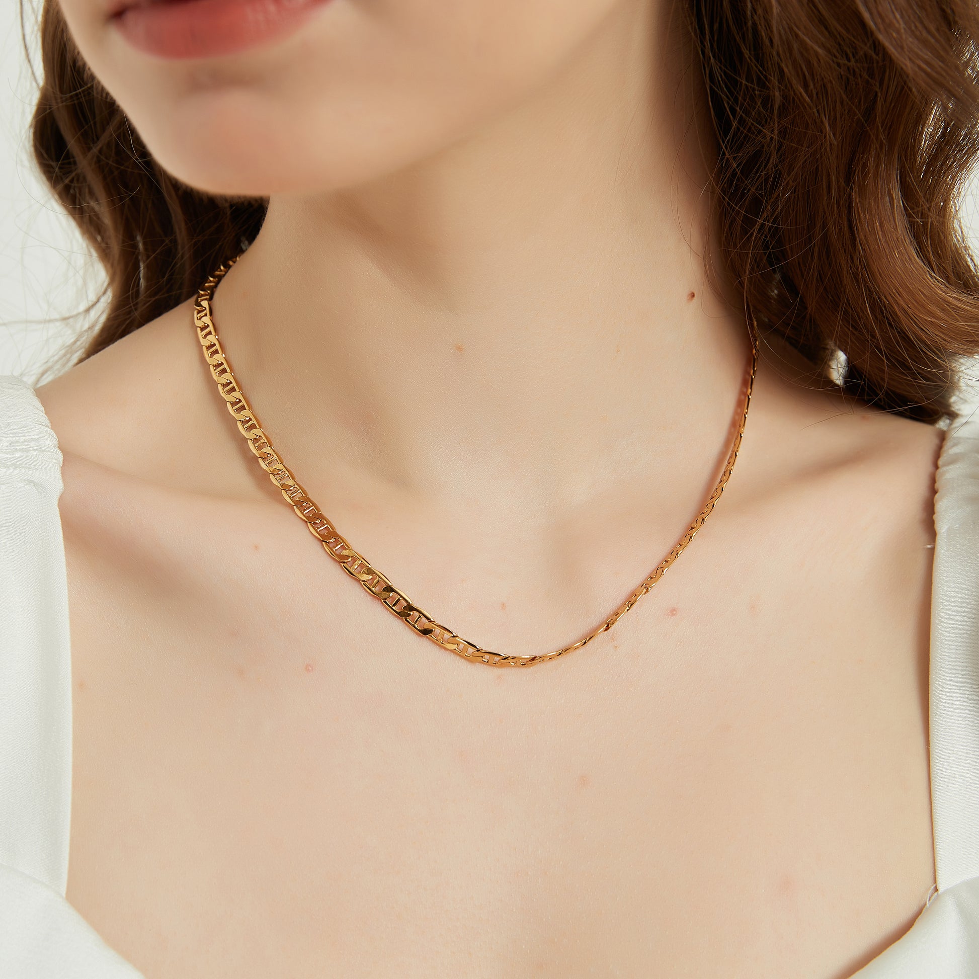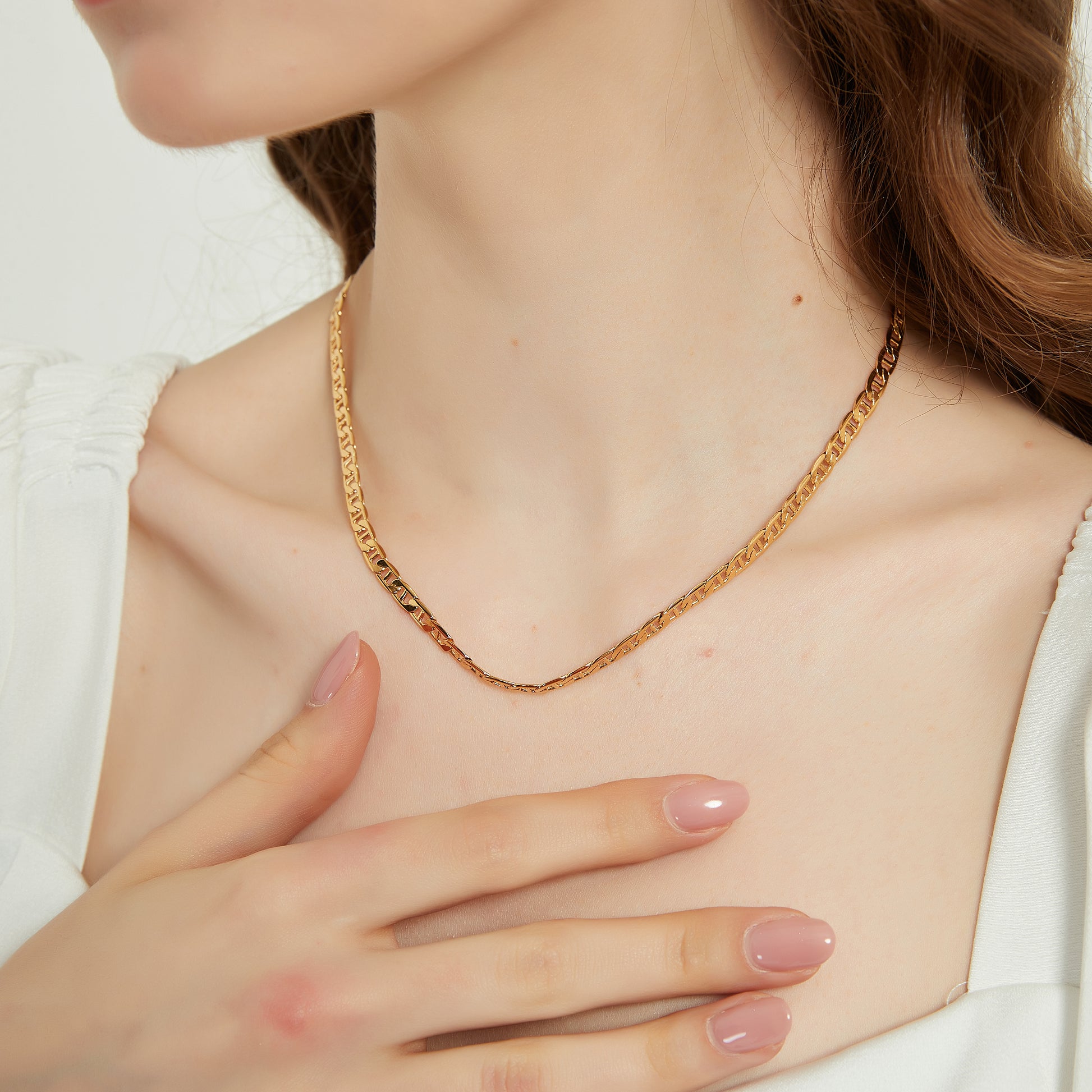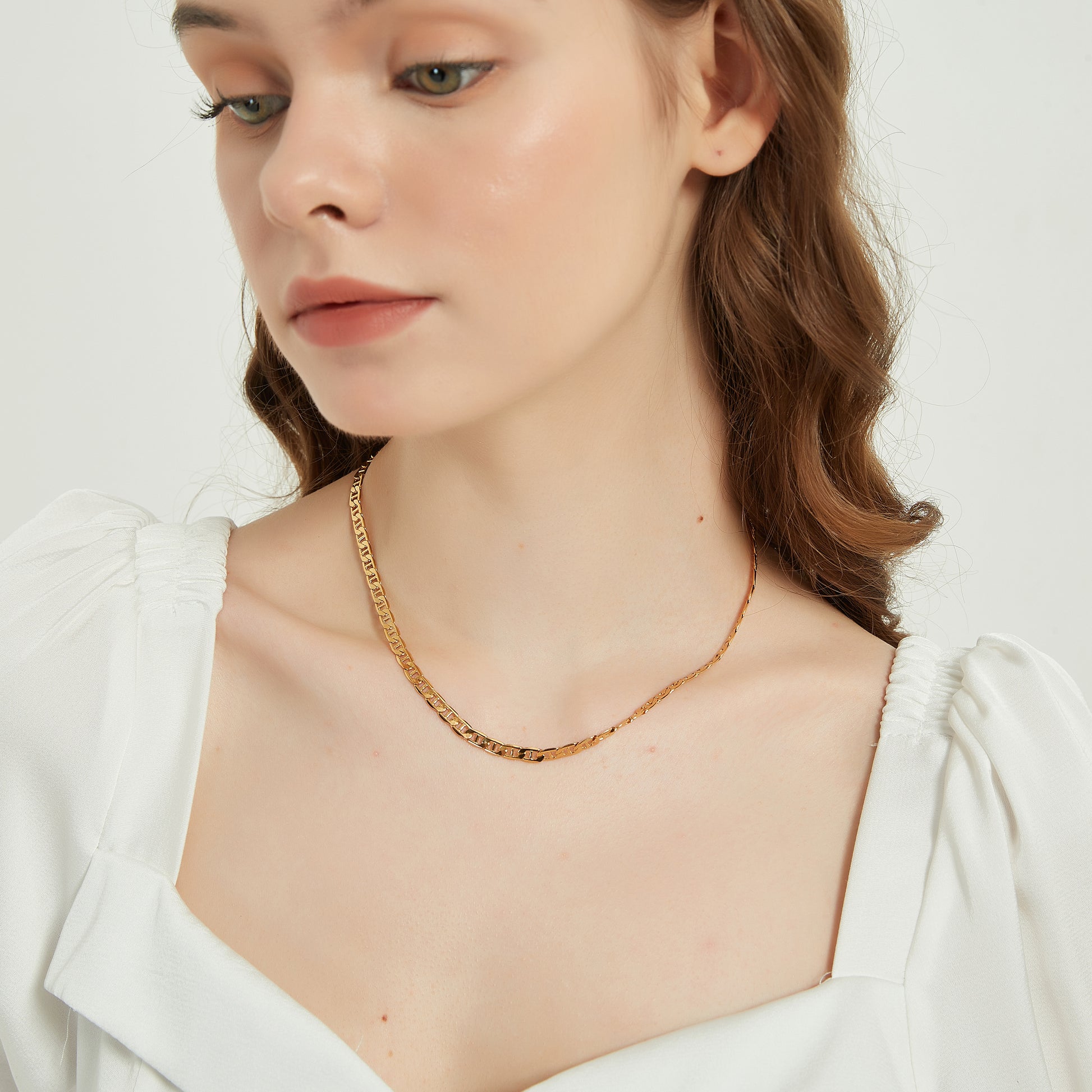 Wrap yourself in elegance with this gold flat chain link necklace, a whisper of luxury that speaks volumes. Each link a testament to timeless style, it's the perfect accessory for those who prefer their sophistication served
