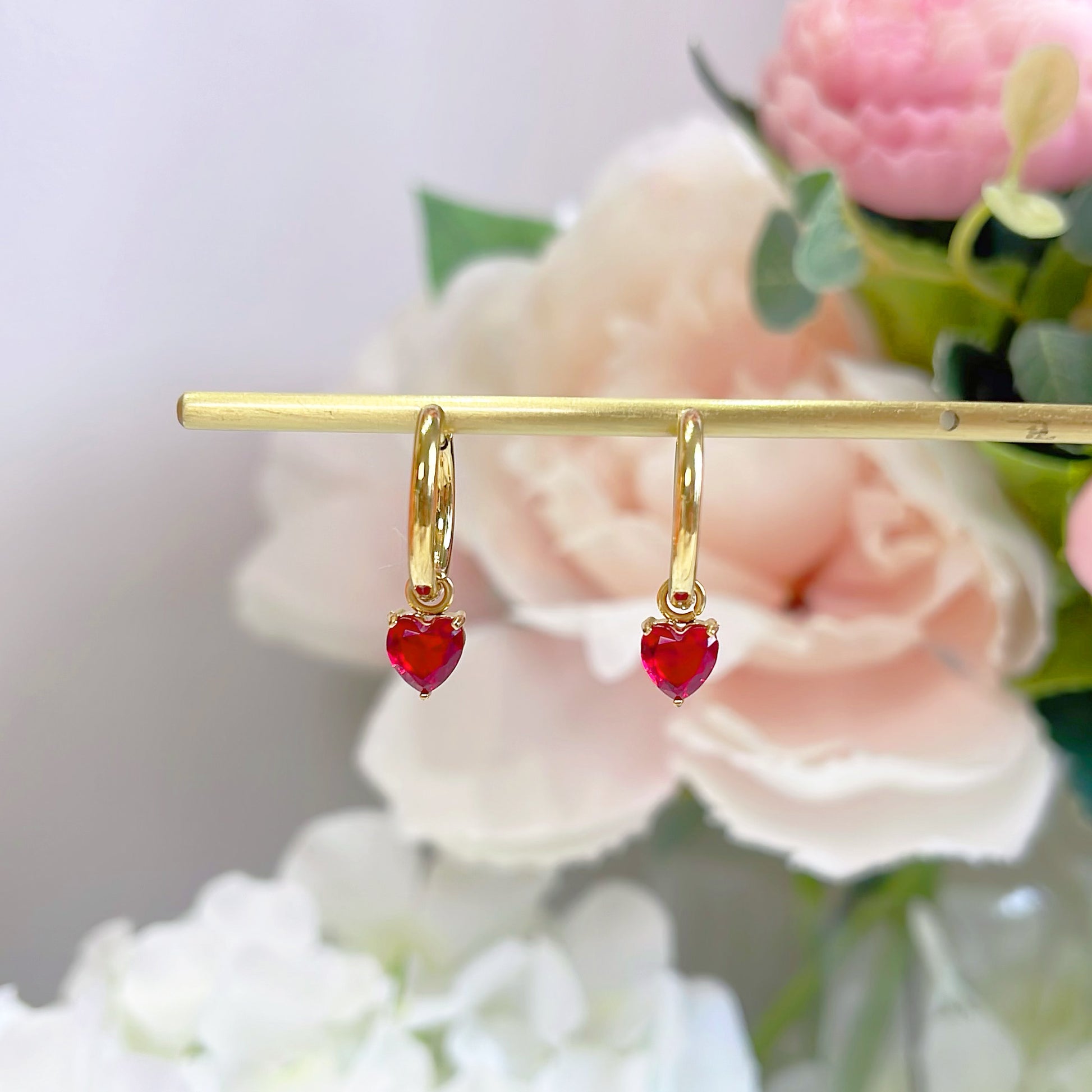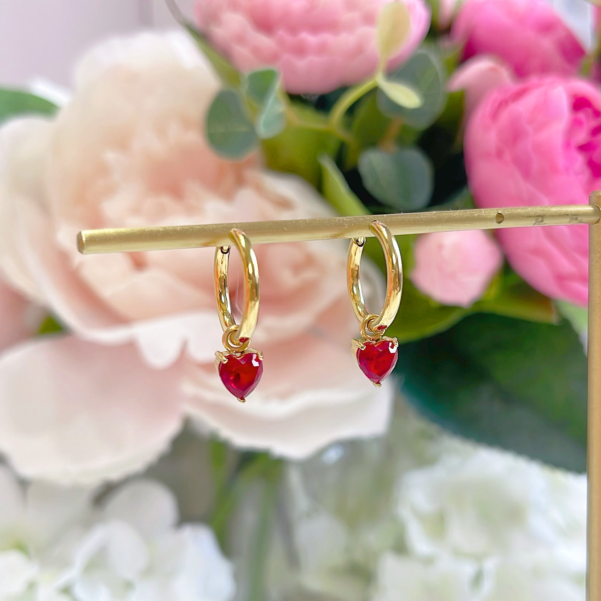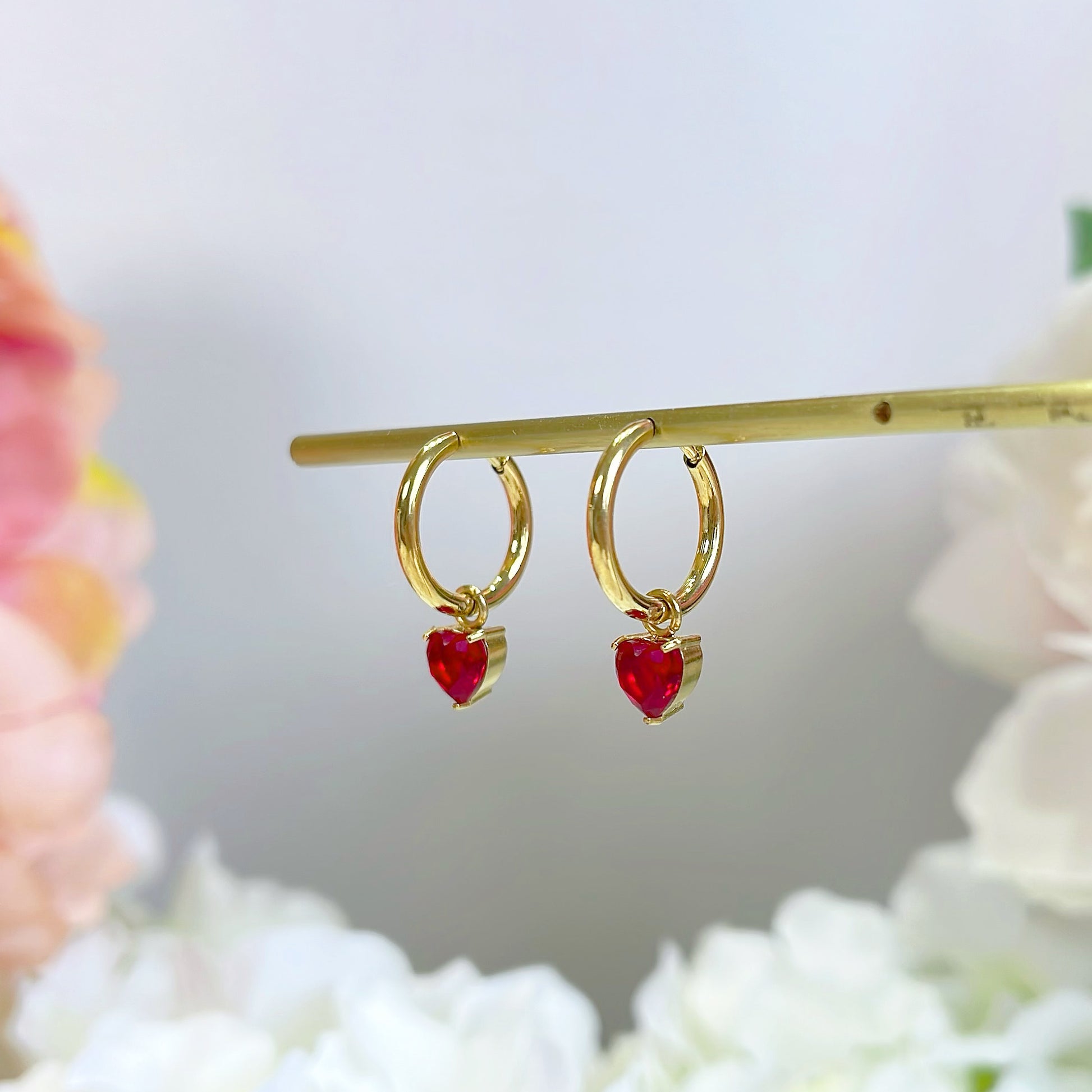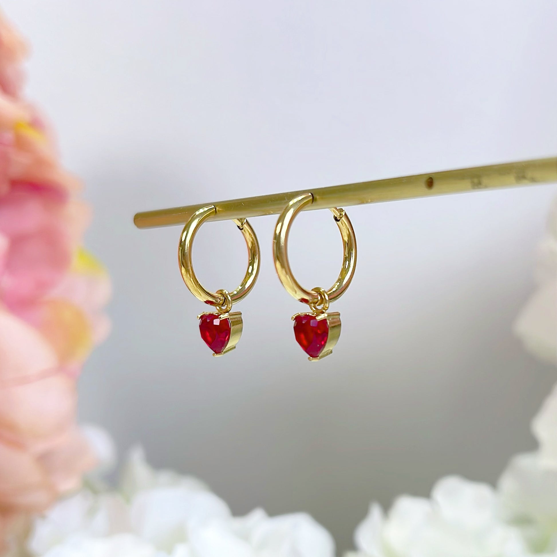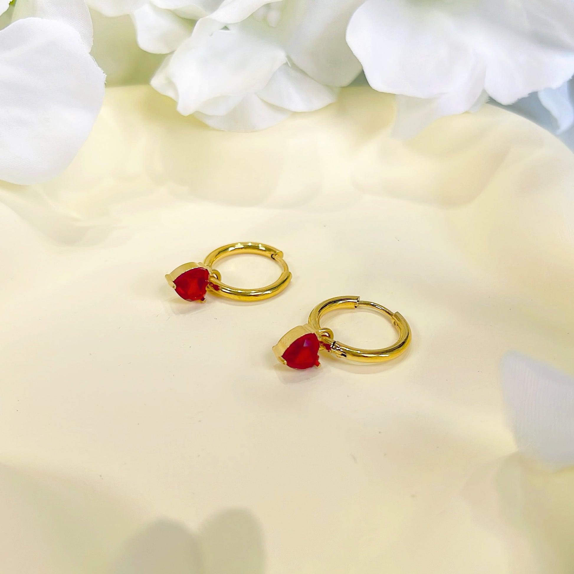 Introducing our Red Heart Huggie Hoop Earrings: these heart hoop earrings are the perfect accessory to add a touch of romance to any outfit. Elevate your style effortlessly with these charming red heart huggie earrings.