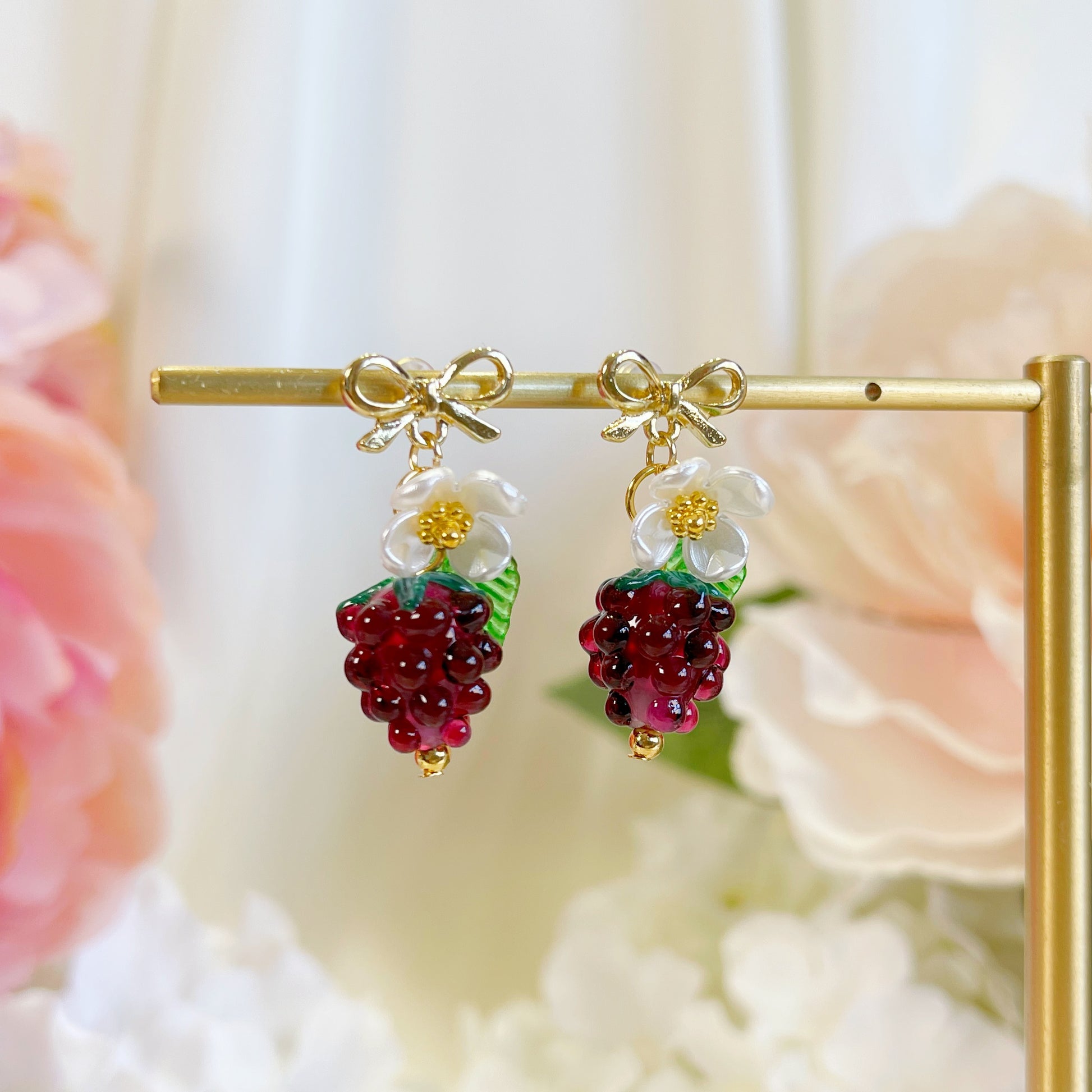 Add a playful pop to your look with these purple raspberry earrings, bursting with fruity charm and delicate floral details. These whimsical fruit earrings blend juicy berries with dainty flower accents, creating a fresh, nature-inspired statement. Perfect for garden parties or everyday sweetness, these flower earrings turn any outfit into a blooming delight.