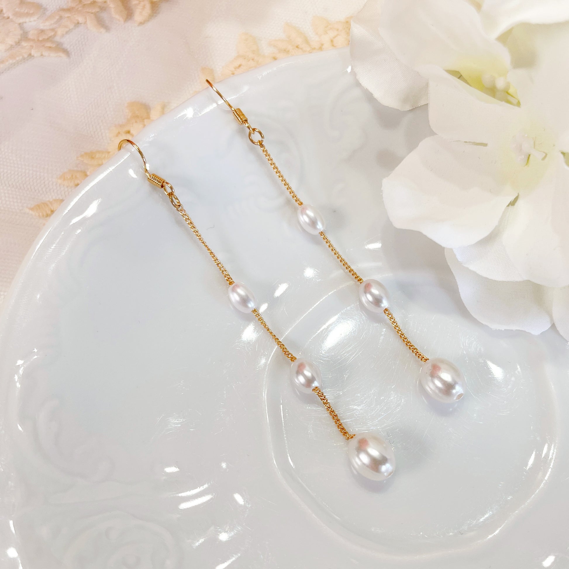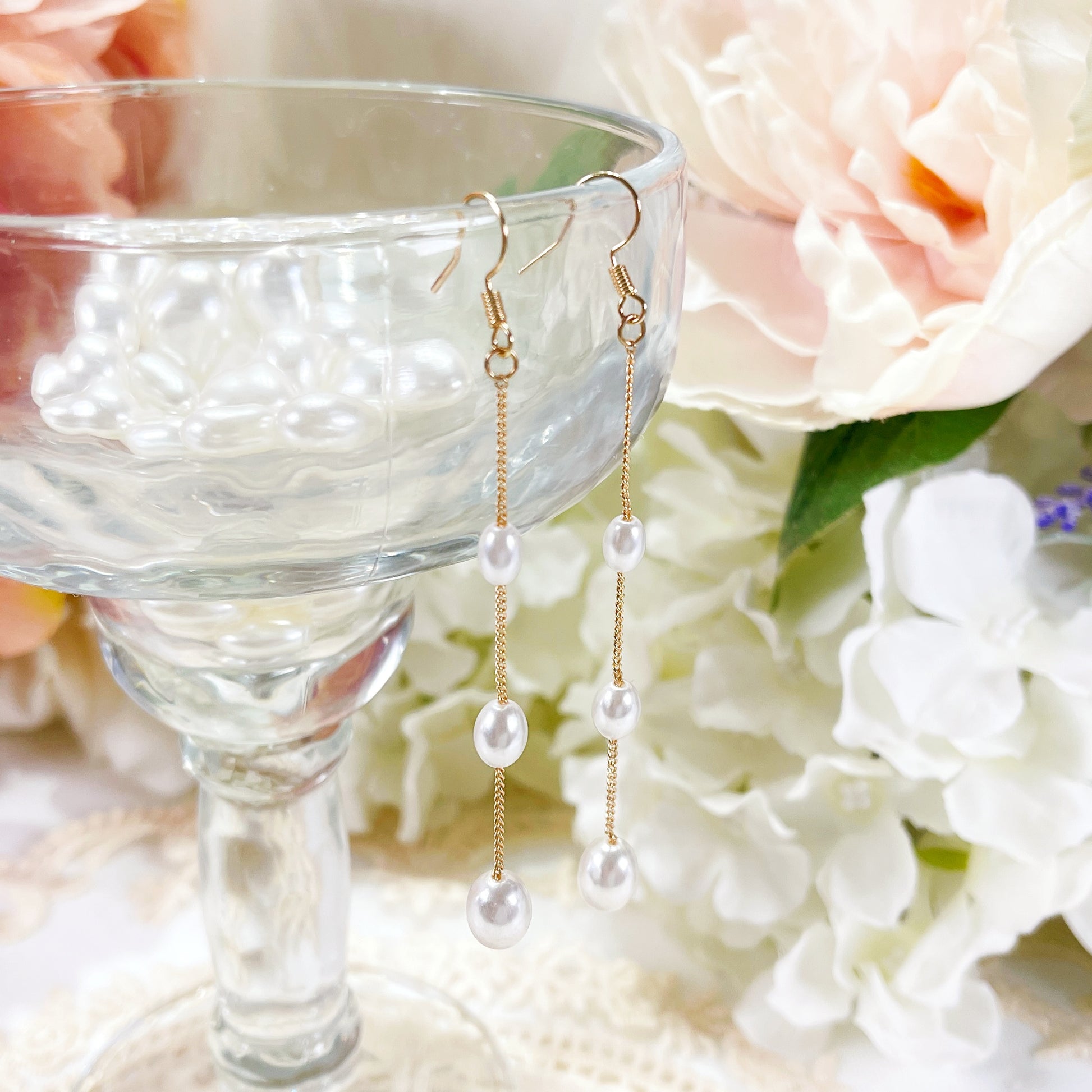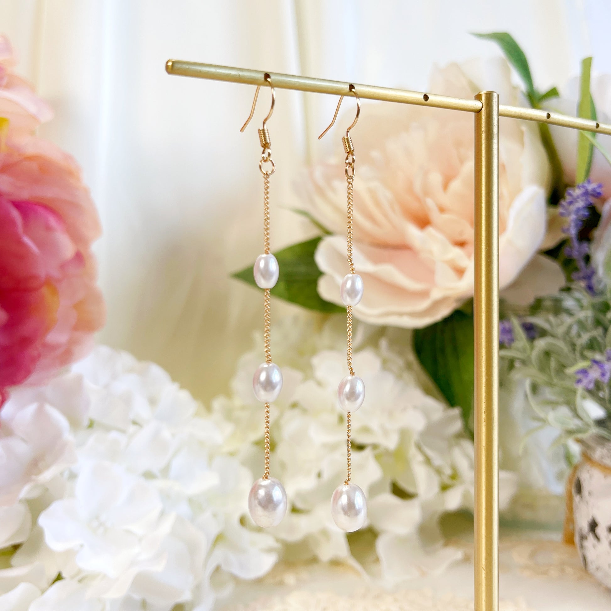 These pearl dangle earrings combine timeless elegance with modern flair, featuring cascading pearls that sway with every step. Designed as long earrings to elongate the neckline, they bring effortless sophistication to any look. Whether you're dressing up for a romantic evening or adding polish to daytime chic, these pearl earrings are your go-to for graceful glamour.