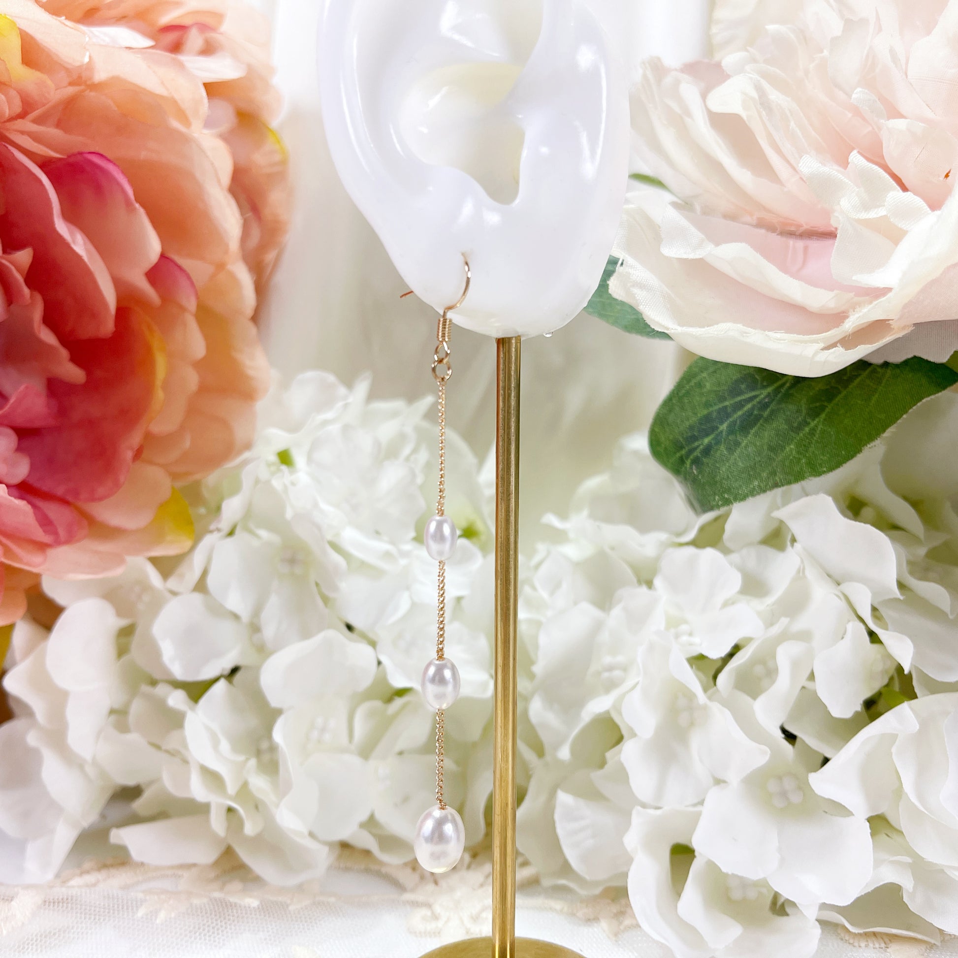 E242 pearl dangle earrings, pearl earrings, long earrings