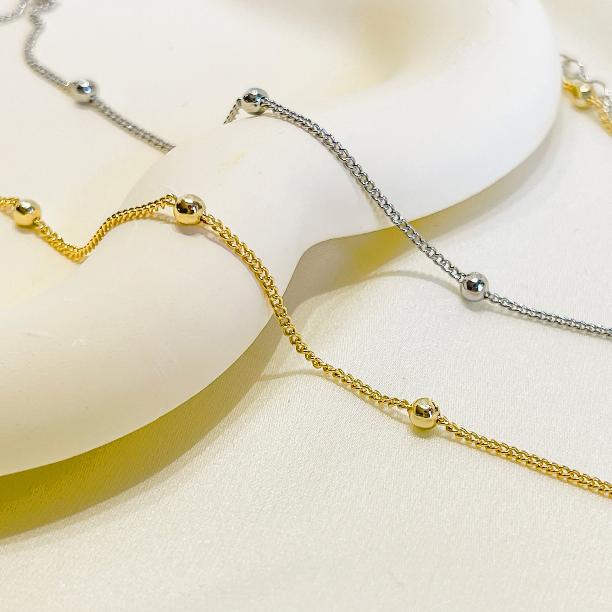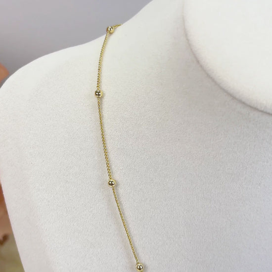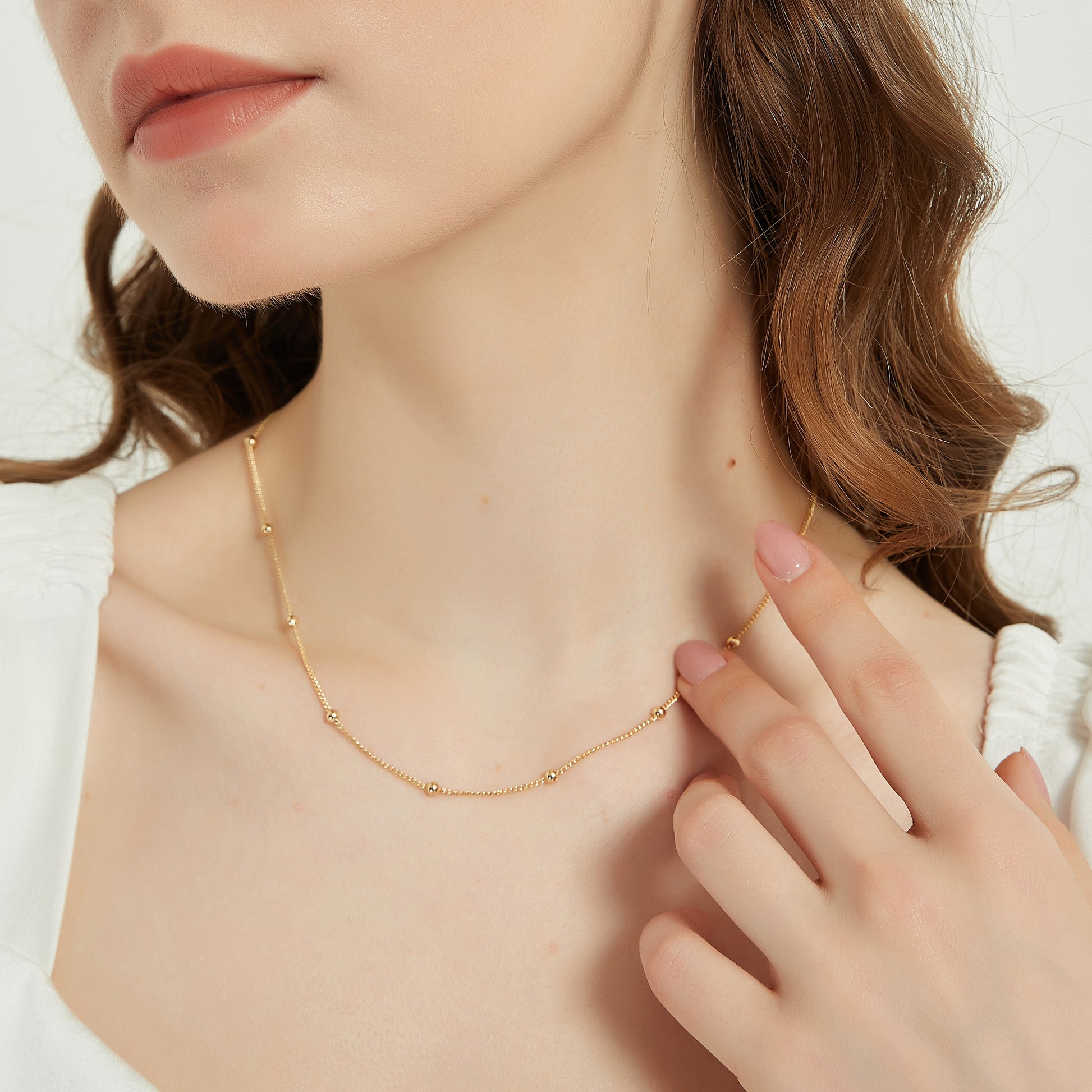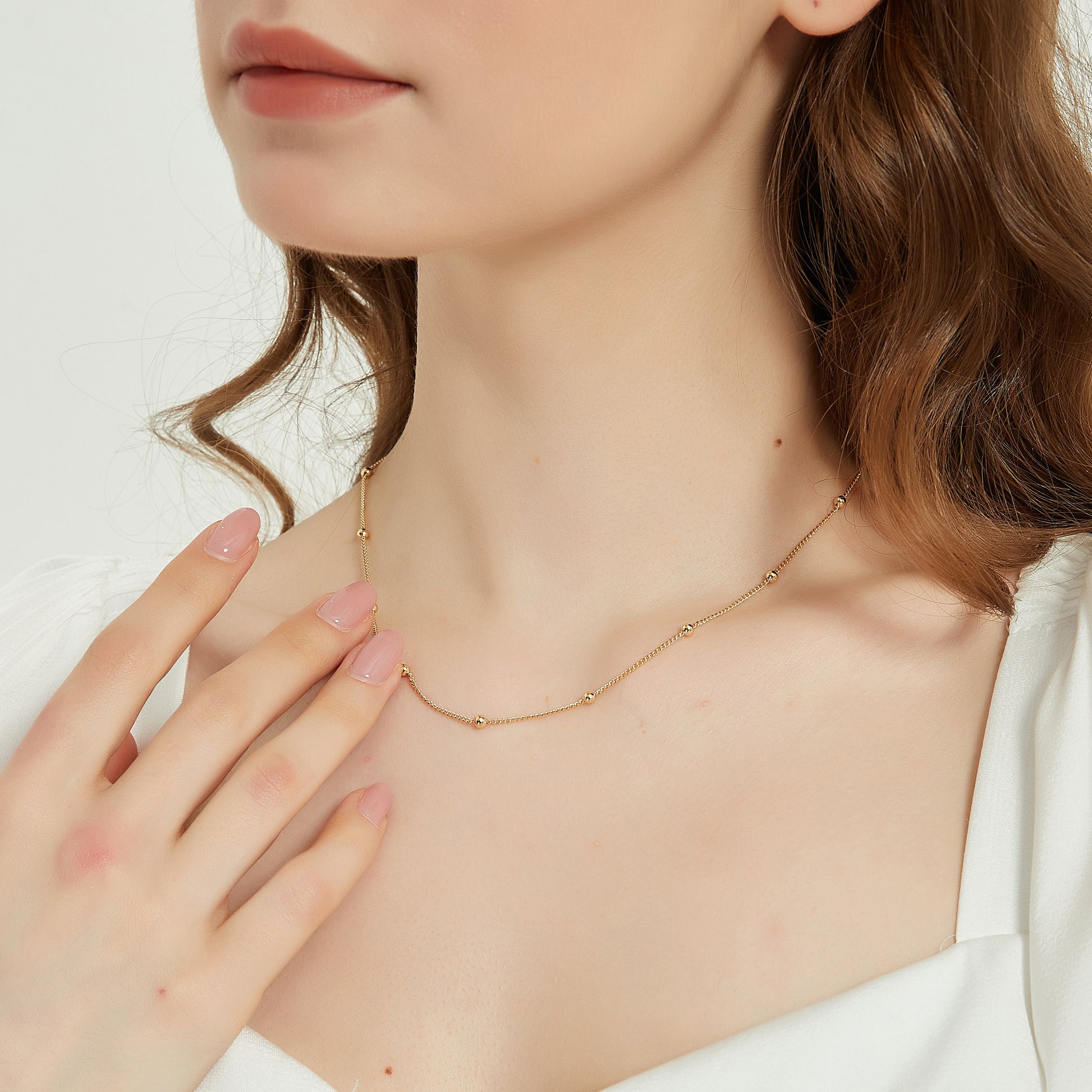 Introducing our Gold Satellite Necklace, the perfect accessory for any occasion. This chain Necklace features a delicate chain adorned with a series of shimmering beads. Crafted from high-quality gold, this beaded Necklace is perfect for adding a touch of sophistication to any outfit.