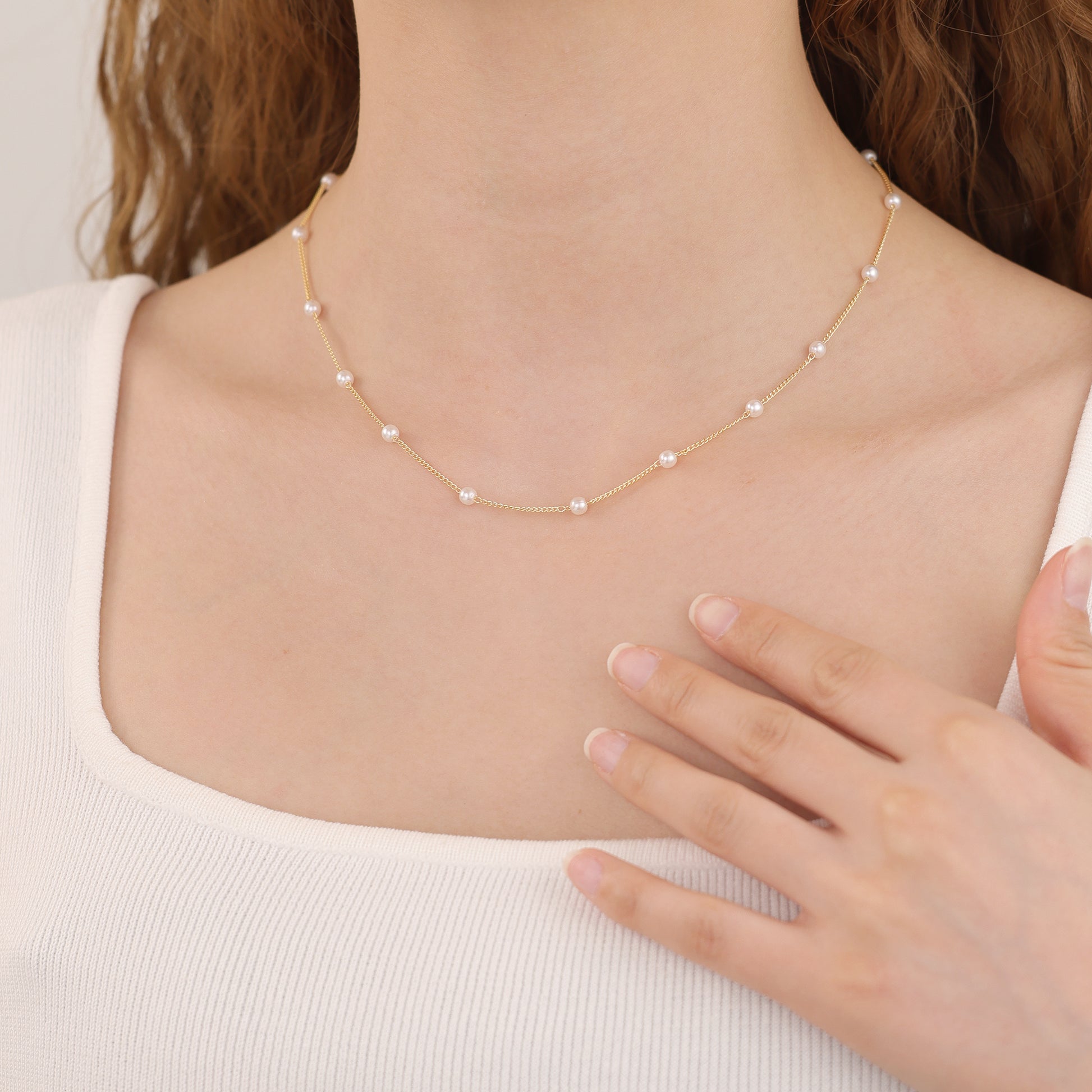 Embrace timeless sophistication with this exquisite pearl choker necklace, a classic accessory for every occasion. Adorned with lustrous dainty pearls, it exudes elegance and grace with every wear. Effortlessly elevate your look with this versatile piece that adds a touch of refinement to any ensemble.