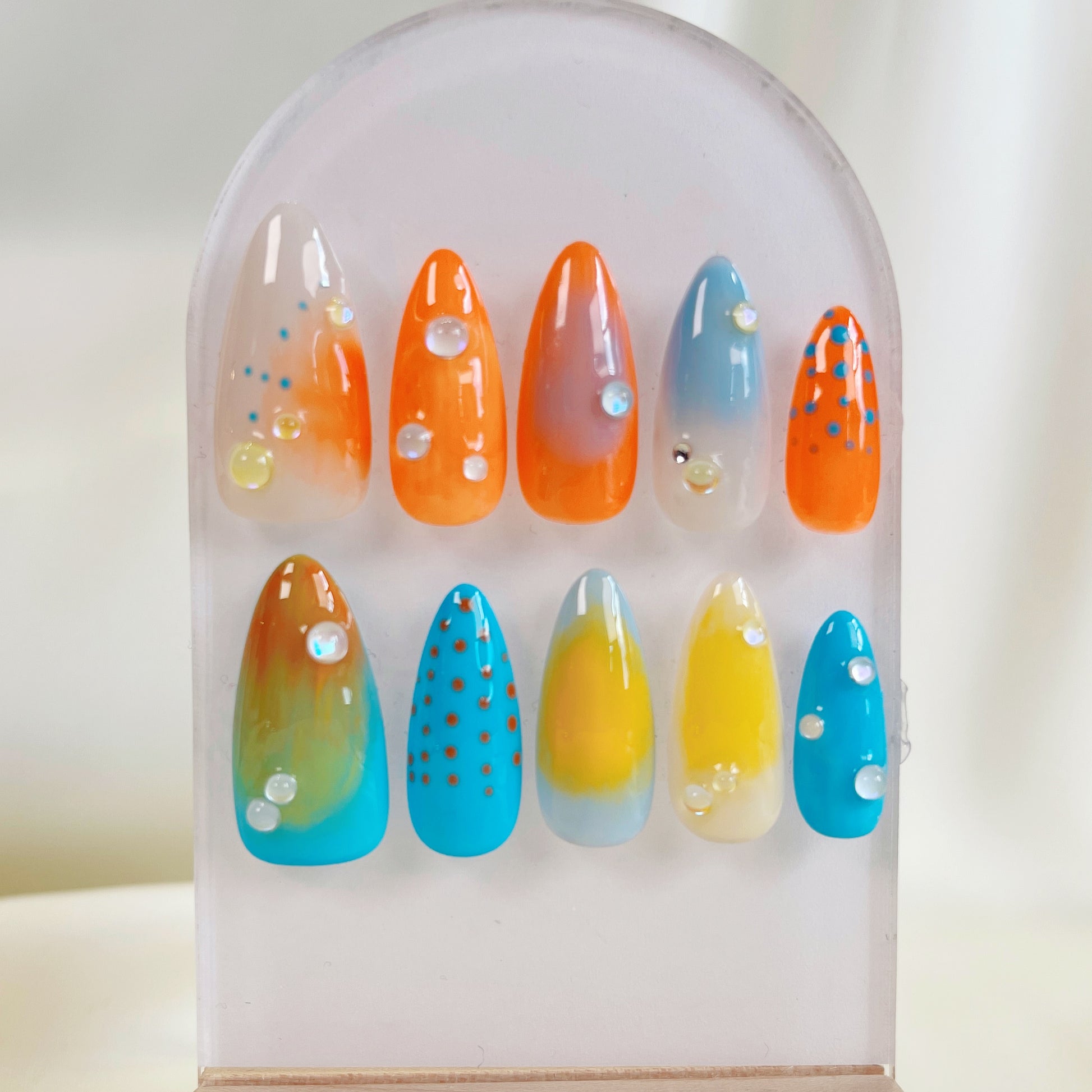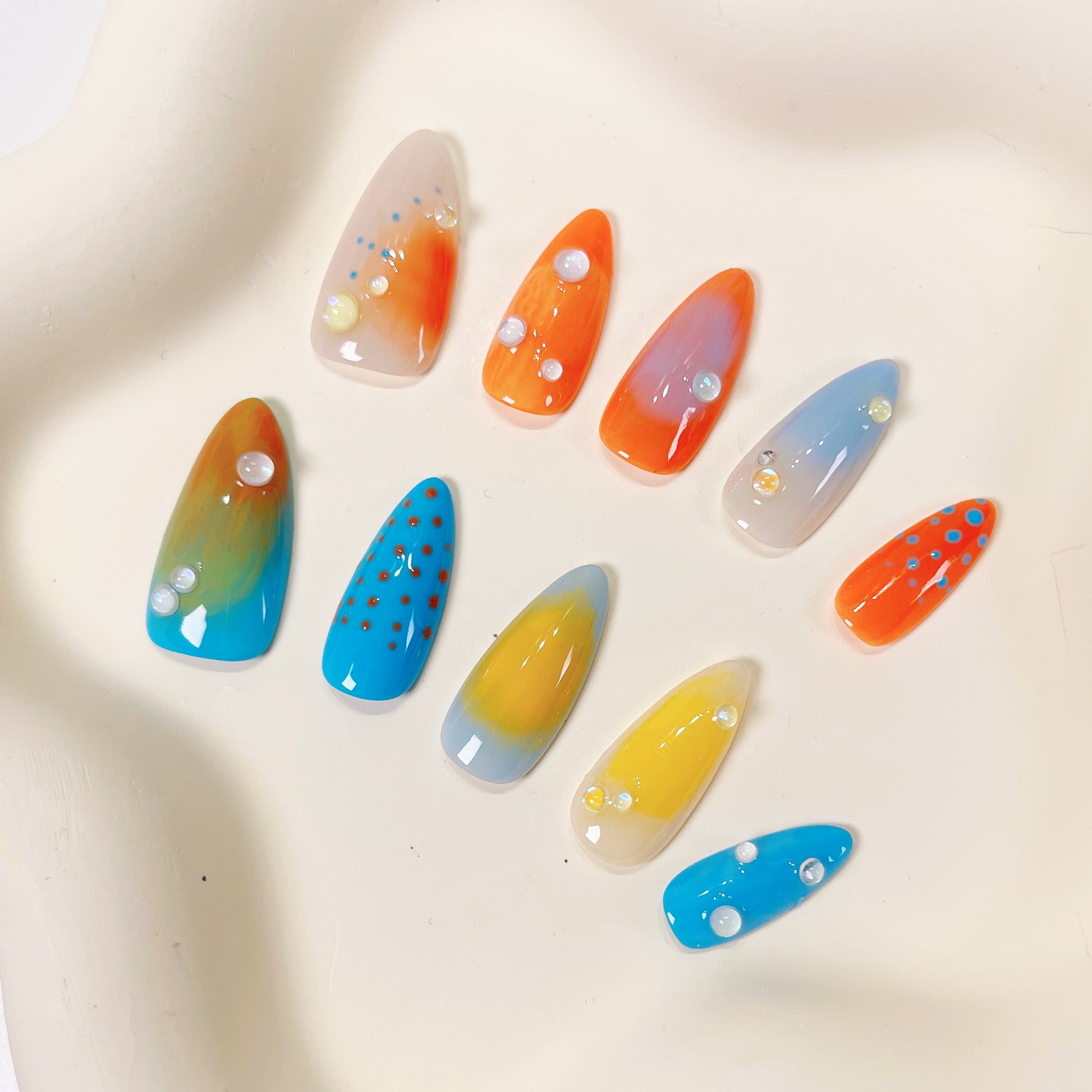 PO062 3d colorful ombre aurora press on nails