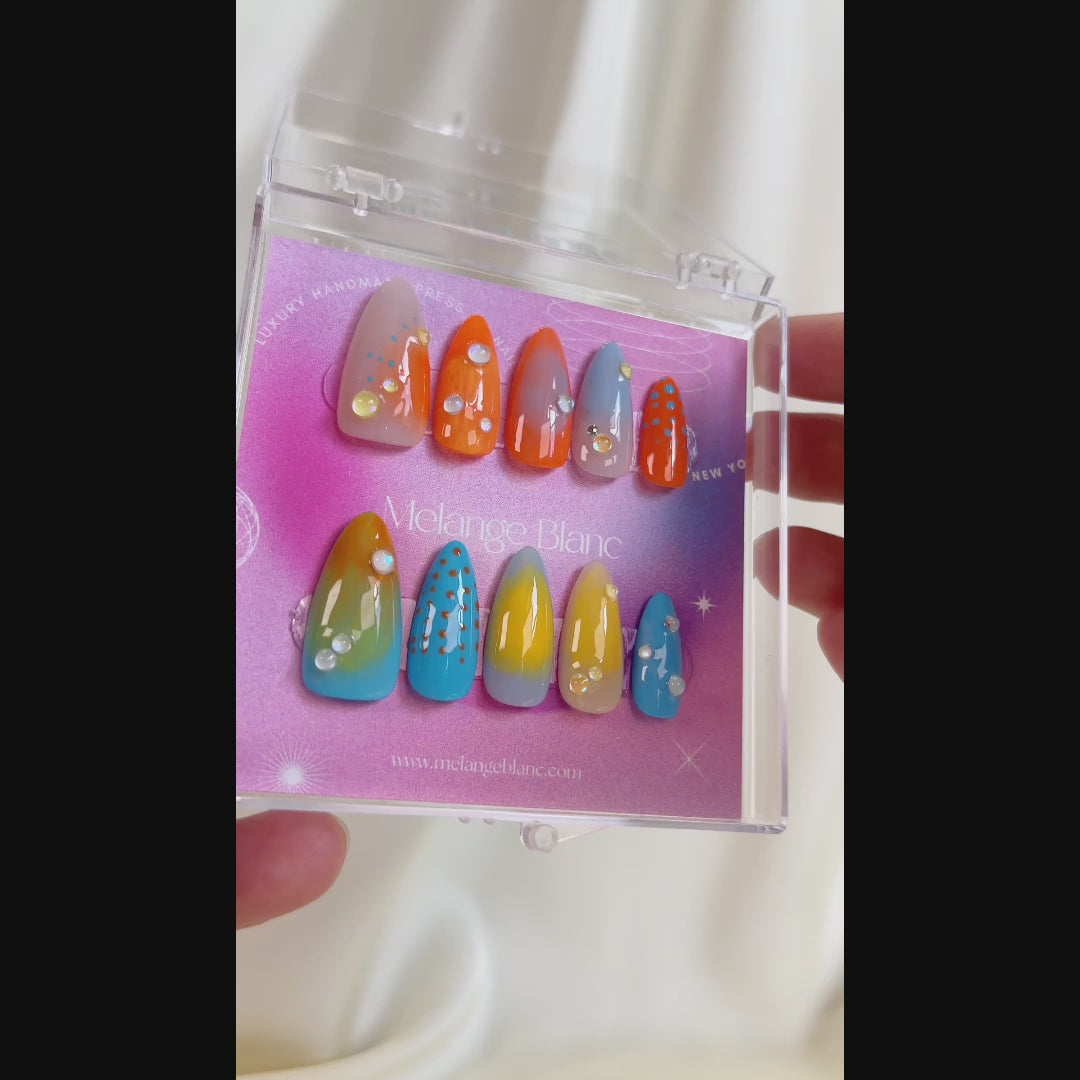Transform your fingertips into a vibrant masterpiece with these colorful ombre press-on nails, blending dreamy hues in perfect harmony. These aurora press-on nails bring a touch of magic, adding a radiant glow to your ombre nails for a look that's out of this world!